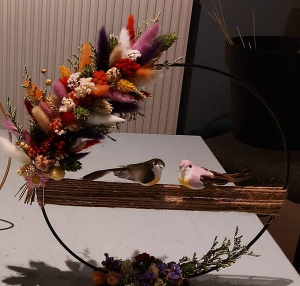 Tijdens deze 3 uur durende workshop maken we een flower hoop van 30 cm diameter gedecoreerd met droogbloemen en optionele decoraties in thema lente/ herfst(touw/lint/vogels/vlinders/veertjes/..). In een gezellige en ontspannen sfeer word je begeleid naar een mooi decoratiestuk waar je jaren van kan genieten.