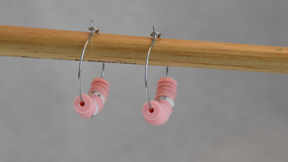 OORBELLEN ZILVER, BLOSSOM PINK & BRIGHT WHITE/BLACK - BJ#3