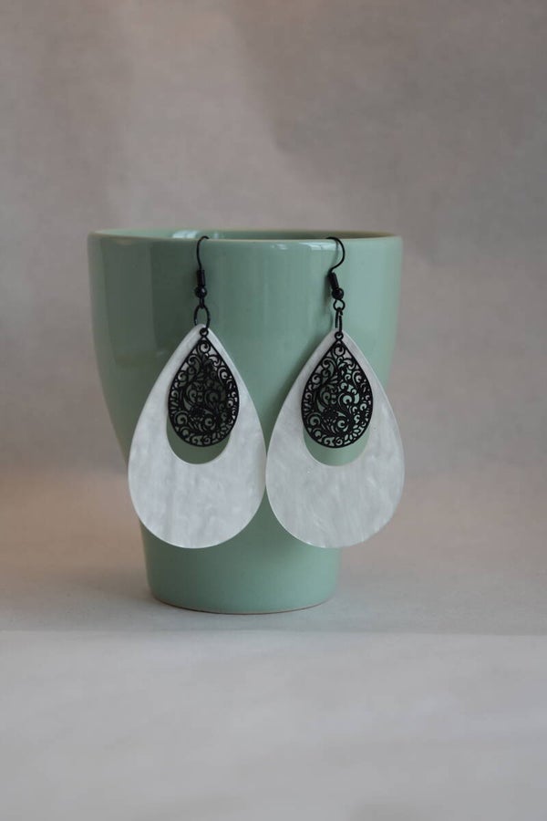 DRUPPELVORMIGE OORBELLEN BLACK & BRIGHT WHITE - BJ#10