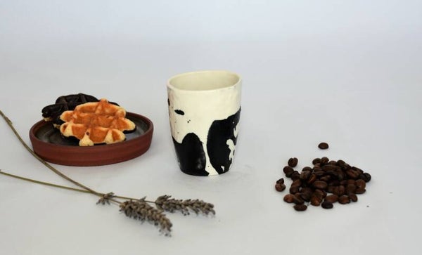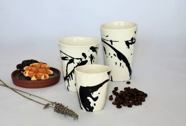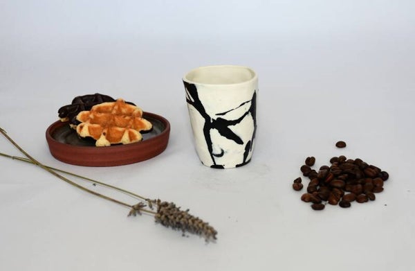 Porseleinen espresso mok met zwarte accenten