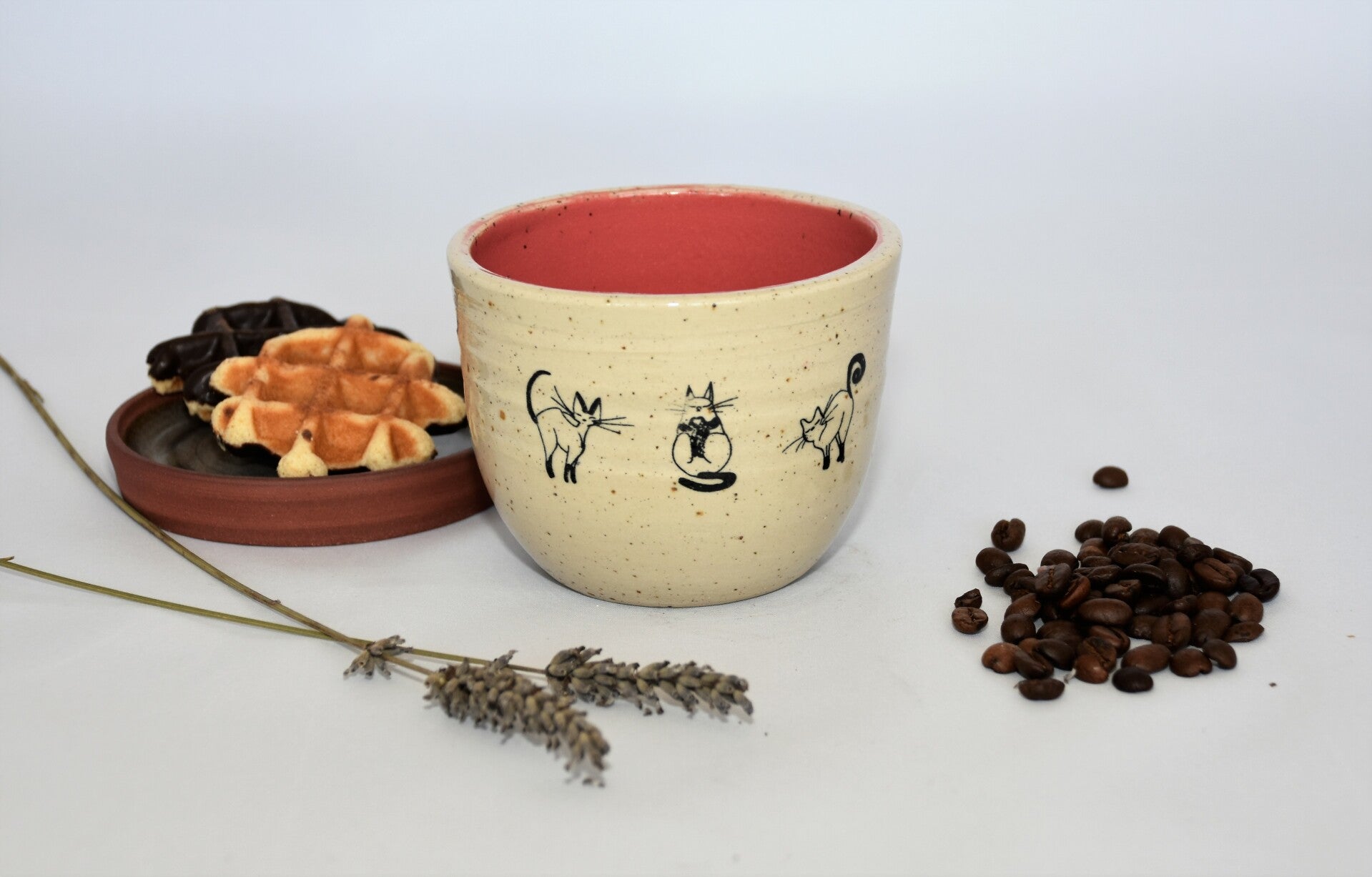 Prachtig Kommetje/bloempotje wit/rood met 3 katjes