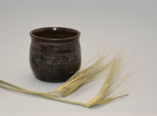 Dit potje is bewerkt met de sgraffito techniek en kan je echt voor alles gebruiken voor je nootjes bij de apero, als een bloempotje, enz.