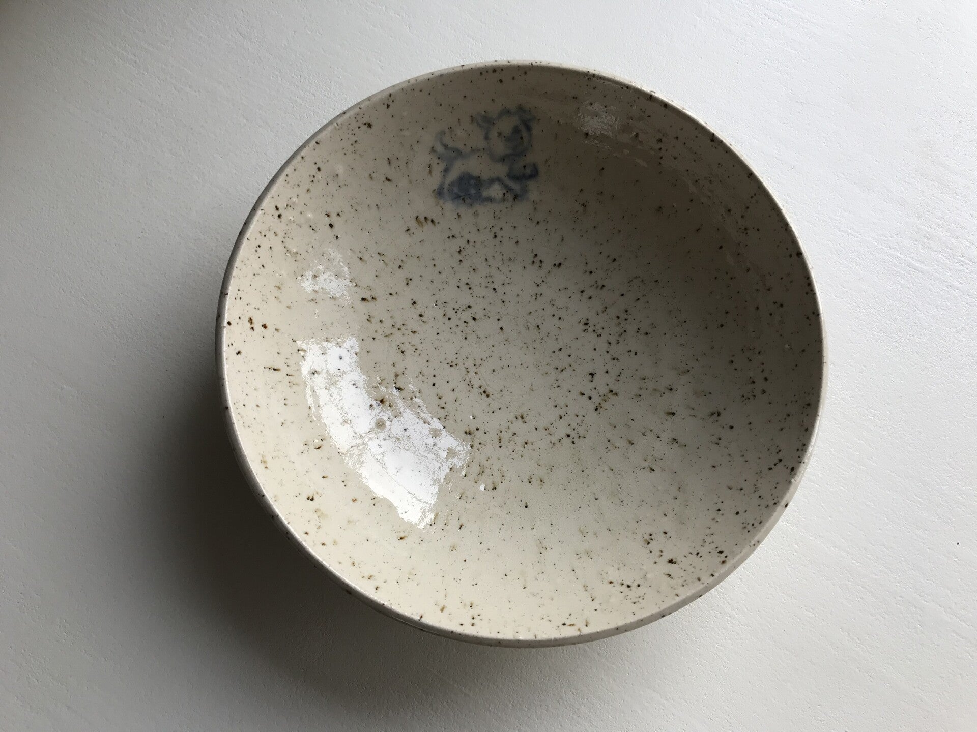 Kom gespikkelde klei met hond en kat