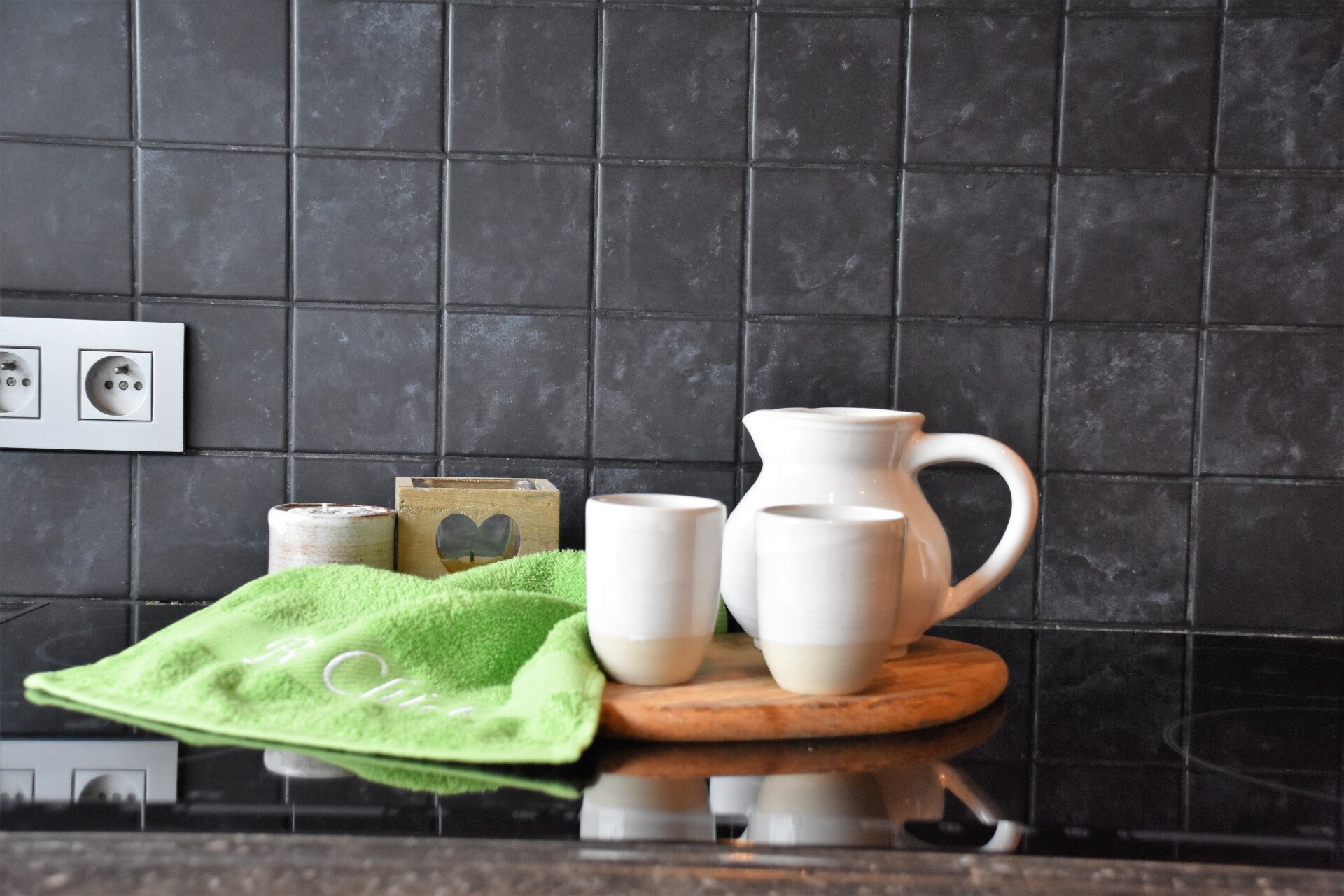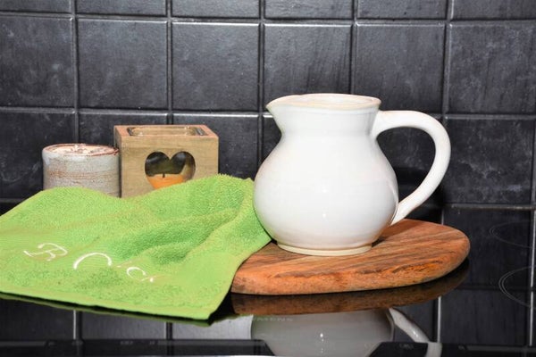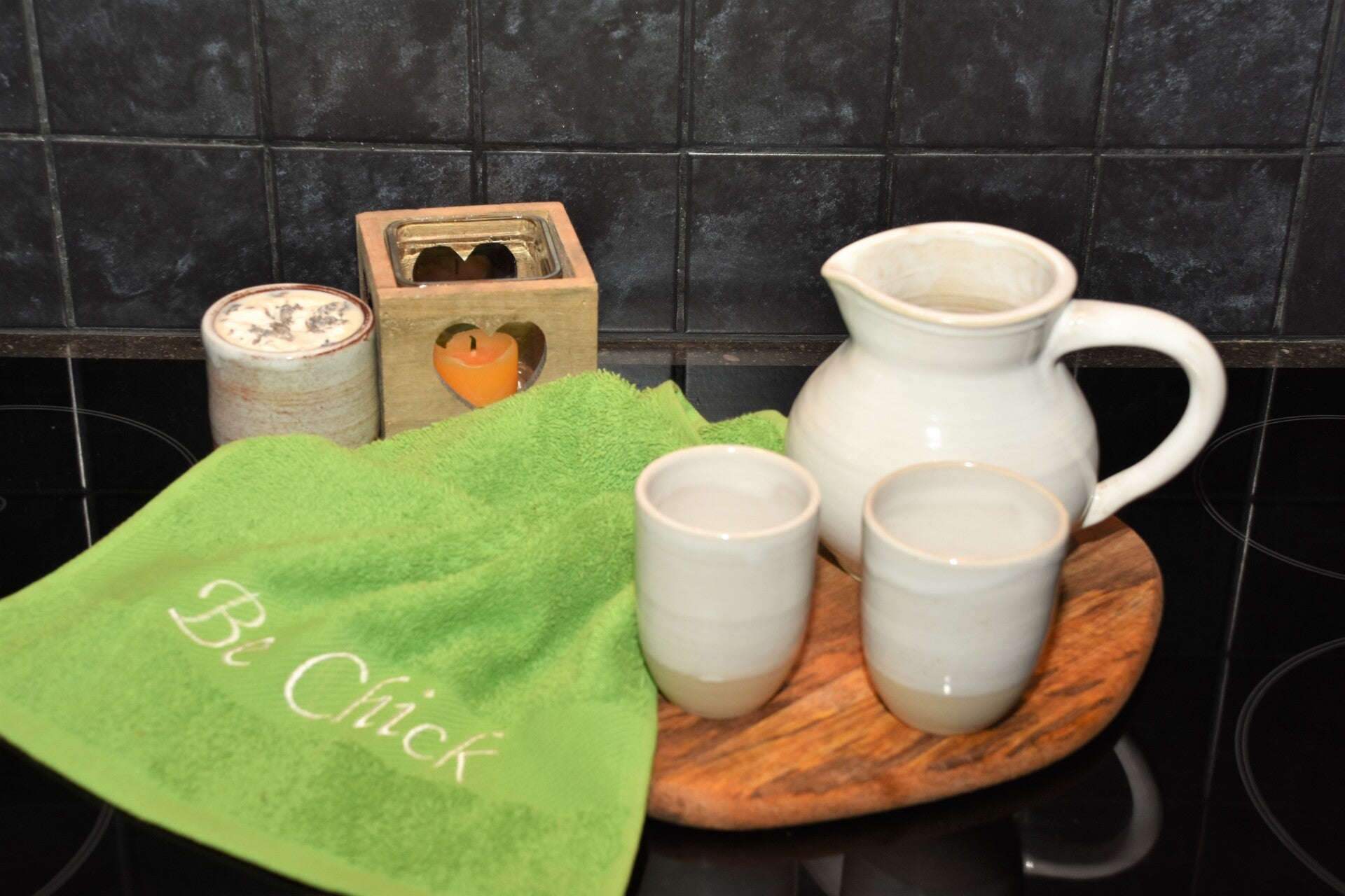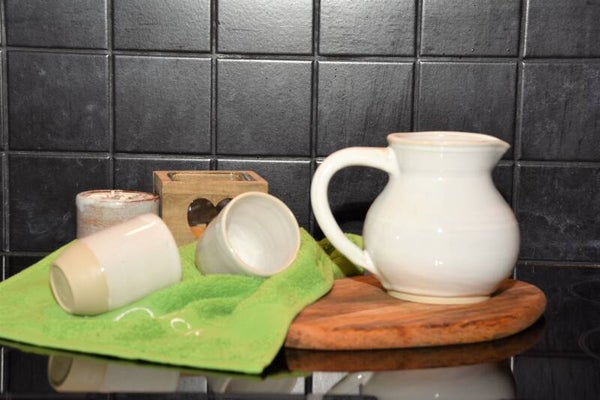 Deze prachtige set schenkkan met 2 witte bekers geeft direct een mooie uitstraling.