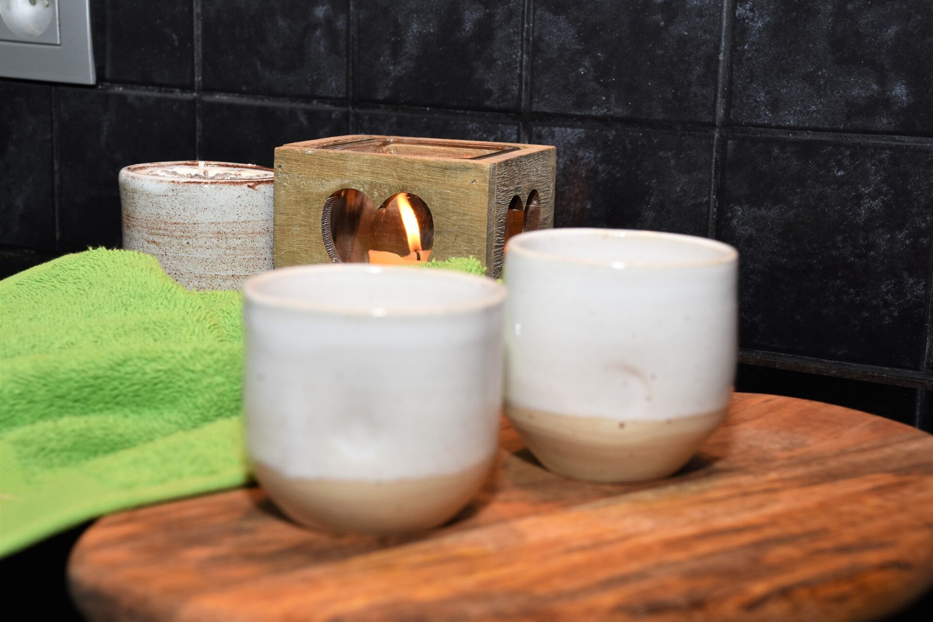 Deze prachtige set van 2 witte bekers geeft direct een mooie uitstraling.